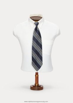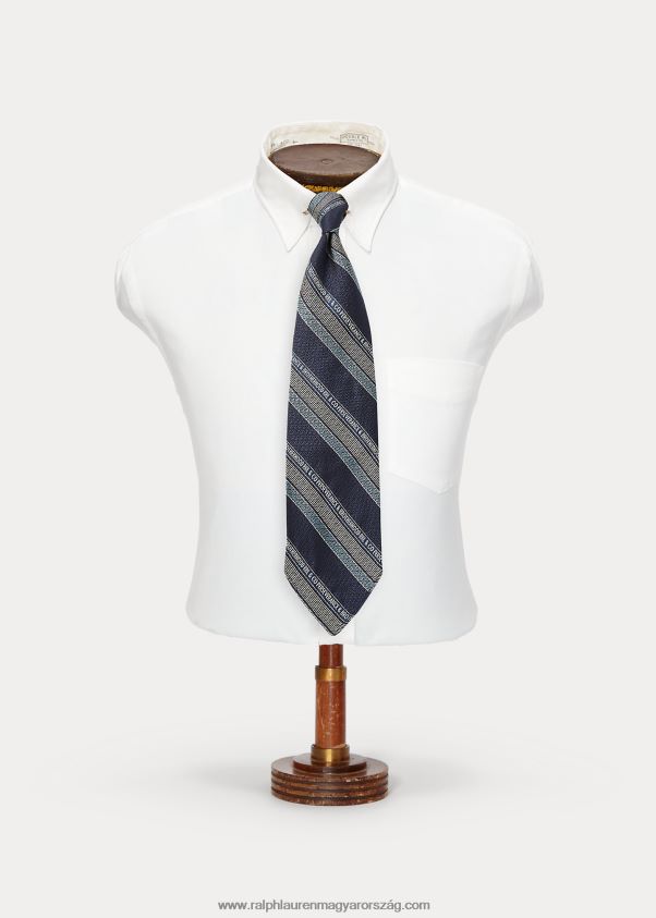 kézzel készített logós csíkos selyem nyakkendő 2680488837 férfiak Ralph Lauren sötétkék/világoskék/krém