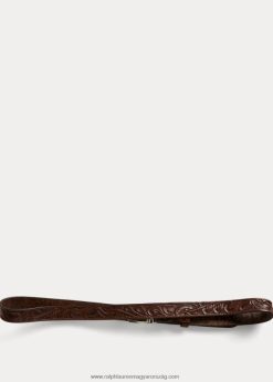 Növényi cserzett amerikai bőrből készült. kézi szerszámokkal, dupla rl ikonikus virágmintájával. A sárgaréz csúszócsat kézzel gravírozott, és vintage ezüst bevonattal rendelkezik, amely idővel egyedi patinát fejleszt ki.