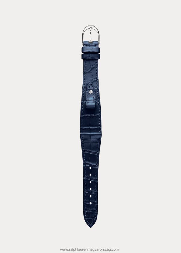 A legkiválóbb aligátorból Franciaországban készült, cserélhető óraszíj egyedi kengyel-ihlette záródással, hogy illeszkedjen a ralph lauren kengyelkollekciójának kis óráihoz.