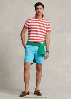 klasszikus fazonú csíkos hálós póló 2680488426 férfiak Ralph Lauren vörös zátony/fehér
