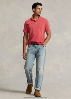 klasszikus fazonú hálós zsebpóló 2680488486 férfiak Ralph Lauren post piros