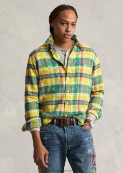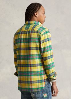 klasszikus fazonú kockás flanel ing 2680488615 férfiak Ralph Lauren 5882a sárga/zöld multi