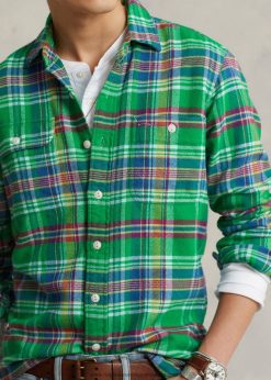 klasszikus fazonú kockás flanel munkaing 2680481064 férfiak Ralph Lauren zöld/sárga multi