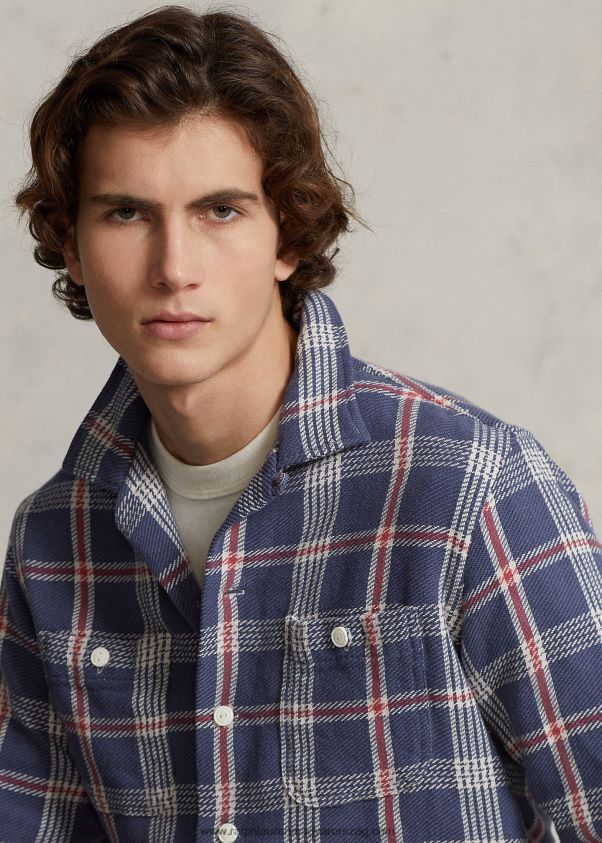 klasszikus fazonú kockás flanel tábori ing 2680488465 férfiak Ralph Lauren sötétkék/törtfehér multi