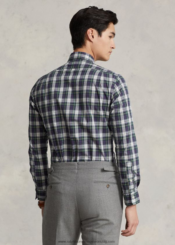 klasszikus fazonú kockás mosott poplin ing 2680488594 férfiak Ralph Lauren zöld/sárga multi