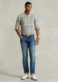 klasszikus fazonú kockás vászoning 2680481142 férfiak Ralph Lauren sárga/zöld multi