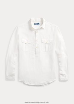 klasszikus fazonú len-selyem popover ing 268048898 férfiak Ralph Lauren fehér