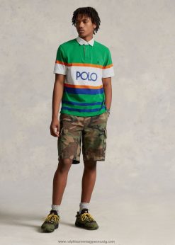 klasszikus szabású csíkos jersey rögbi ing 268048797 férfiak Ralph Lauren sportos zöld multi