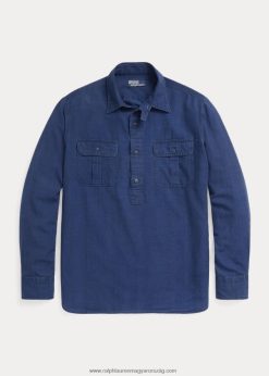 klasszikus fazonú poplin popover munkaing 2680481164 férfiak Ralph Lauren indigó textúra