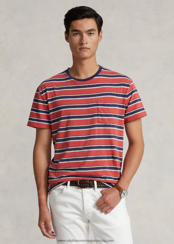 klasszikus szabású csíkos jersey póló 2680488448 férfiak Ralph Lauren post piros multi
