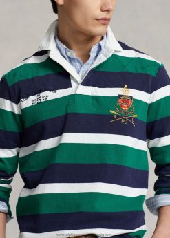 klasszikus szabású csíkos jersey rögbi ing 268048797 férfiak Ralph Lauren sportos zöld multi
