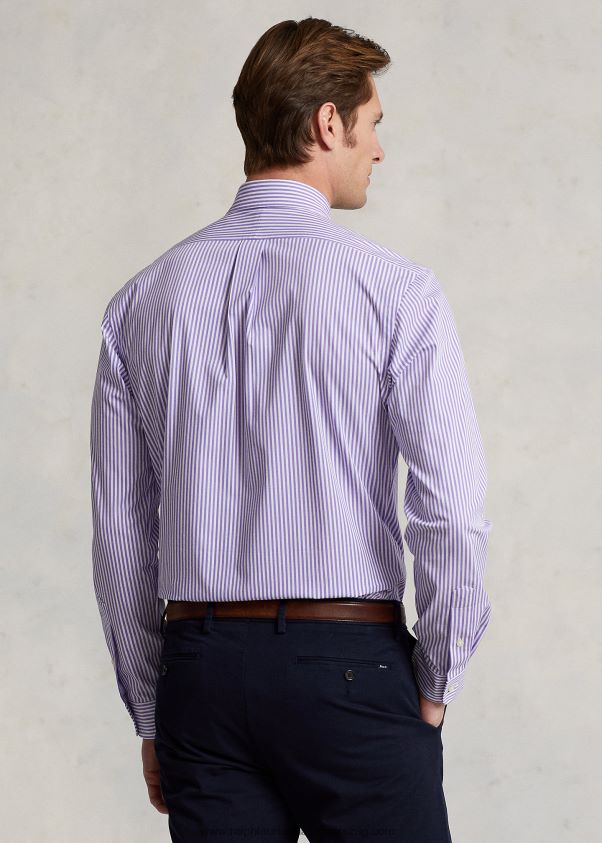 klasszikus szabású csíkos sztreccs poplin ing 268048774 férfiak Ralph Lauren levendula/fehér