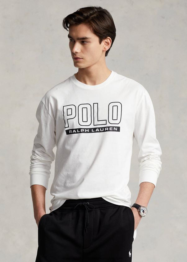 klasszikus szabású logós jersey crewneck póló 2680488500 férfiak Ralph Lauren fehér