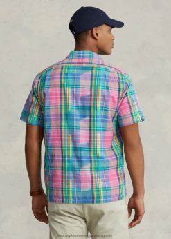 klasszikus szabású madras tábori ing 2680481144 férfiak Ralph Lauren rózsaszín/királyi multi