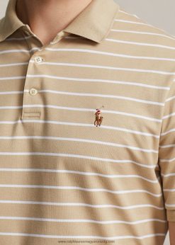 klasszikus szabású puha pamut póló 268048142 férfiak Ralph Lauren homokdűne/fehér
