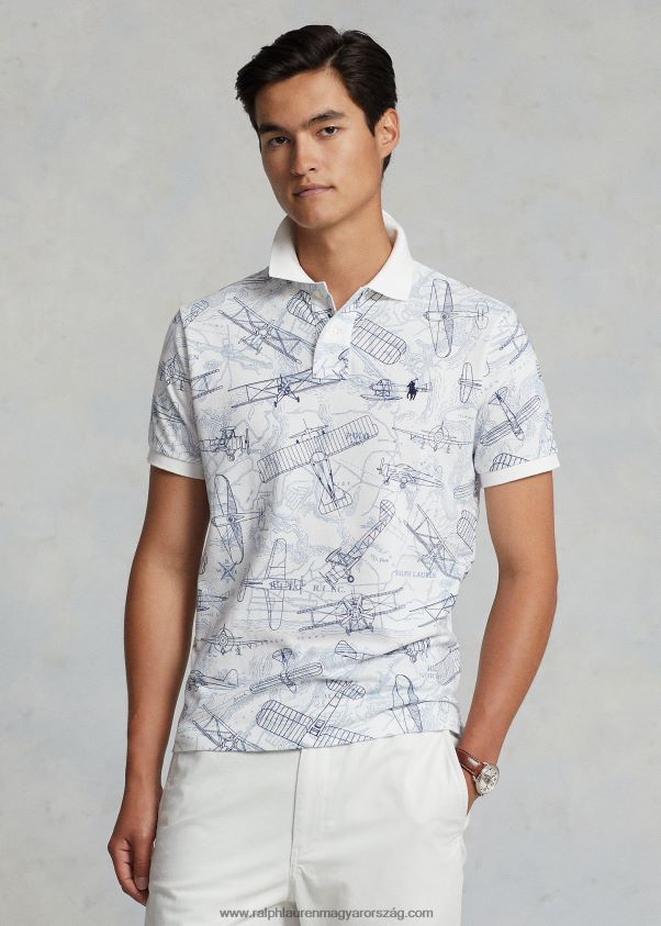 klasszikus szabású repülőhálós pólóing 268048731 férfiak Ralph Lauren fehér