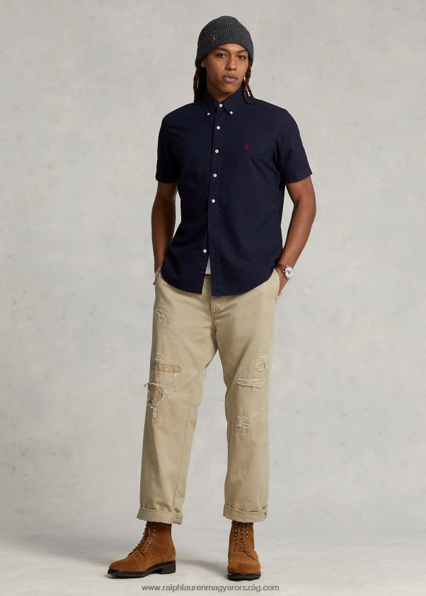klasszikus szabású, ruhafestett oxford ing 268048487 férfiak Ralph Lauren rl haditengerészet