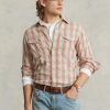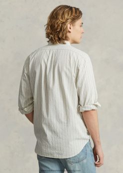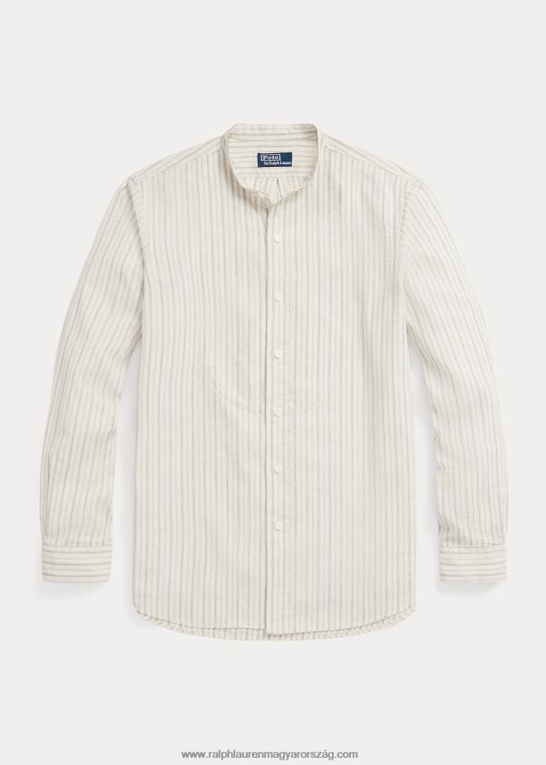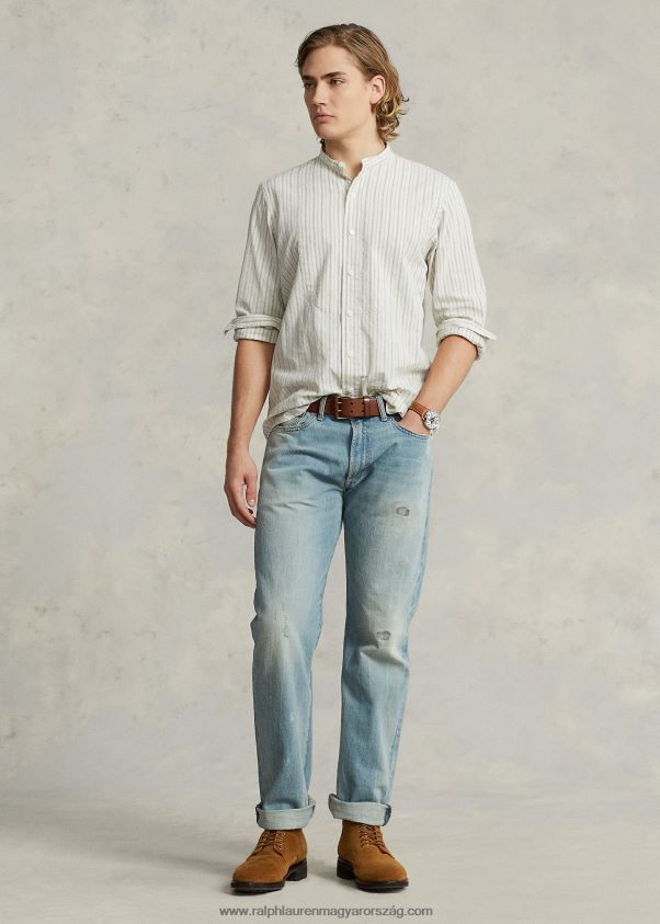 Csíkos pamut dobbyból készült ing szalaggalléros és varrott vállpántos. A ralph lauren jobb gyapottal együttműködve javítja a gyapottermesztést világszerte. a jobb gyapot arra tanítja a gazdálkodókat, hogy hatékonyan használják fel a vizet, gondoskodjanak a talaj és a természetes élőhelyek egészségéről, csökkentsék a legkárosabb vegyszerek használatát, és hajtsák végre a tisztességes munka elveit.