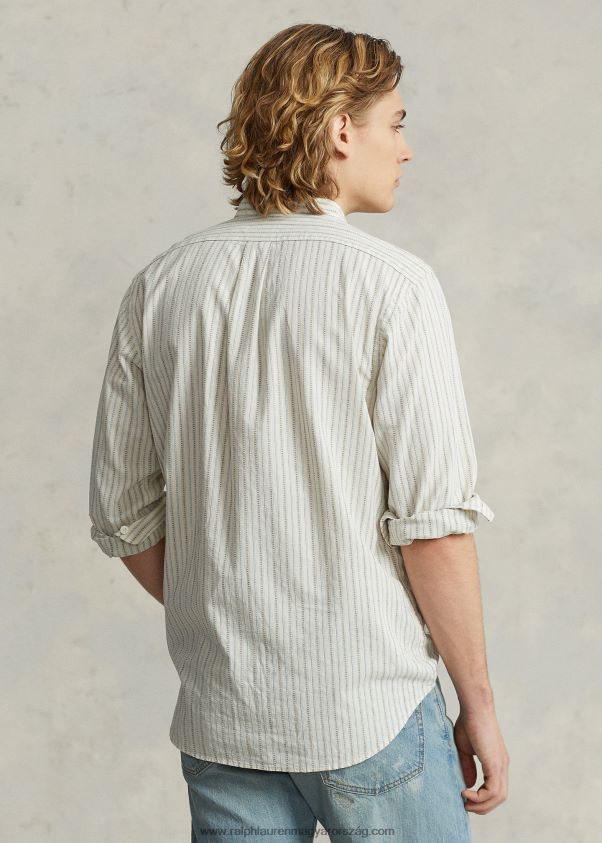 klasszikus szabású varrott kantáros dobby ing 2680488442 férfiak Ralph Lauren törtfehér/navy multi