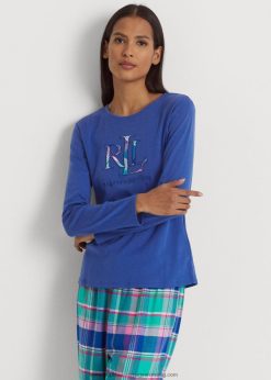 kockás hosszú ujjú pizsama garnitúra 2680489576 nők Ralph Lauren kék kockás