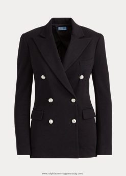 A kétsoros blézer szerkezete találkozik egy pulóver kendőjével ebben a pamutkeverék kabátban.
