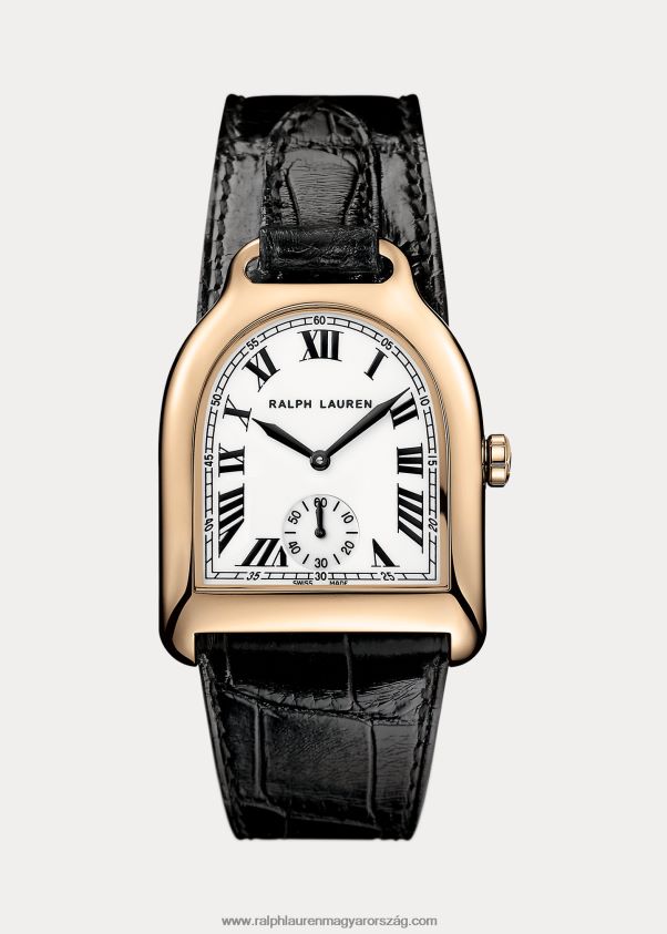 Ralph lauren hagyomány és tartós stílus iránti mély elismerésének élénk kifejezése, az rl kengyel kollekció jellegzetes kengyel alakú sziluettjével ragadja meg lovas örökségünket. csiszolt rózsaszín arany tokkal és kifinomult aligátorszíjjal, egyedi kengyel ihlette záródással, közepes rózsa arany színű aligátoróránk lakkozott római számokkal, vasúti stílusban nyomtatott percpályával, oxidált kard alakú mutatókkal és másodperccel rendelkezik. segédtárcsa. ez a klasszikus, vízálló óra egy rl701 kaliberű kézi tekercselő gyártású mechanikus szerkezettel van felszerelve, amely 70 órás teljesítménytartalékot biztosít. Elegáns és jellegzetes, ez az ikonikus kollekció időtlen kifinomultságot és a svájci gyártású technikai precizitás csúcsát kínálja.