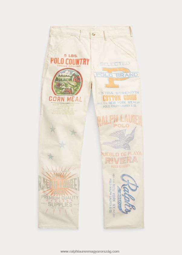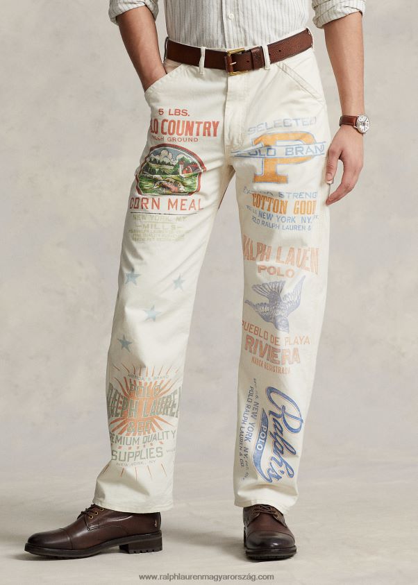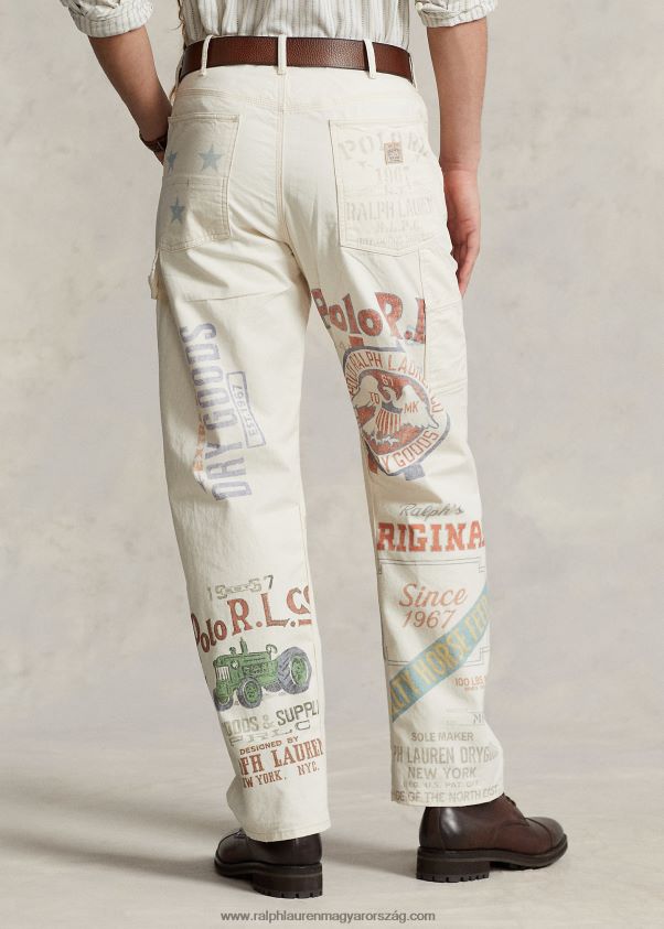 Ezek a pamut farmerek a vintage etetőzsákok által ihletett, jellegzetes grafikákkal vannak nyomtatva, és bonyolultan mosva fakult felületet hoznak létre. A ralph lauren jobb gyapottal együttműködve javítja a gyapottermesztést világszerte. a jobb gyapot arra tanítja a gazdálkodókat, hogy hatékonyan használják fel a vizet, gondoskodjanak a talaj és a természetes élőhelyek egészségéről, csökkentsék a legkárosabb vegyszerek használatát, és hajtsák végre a tisztességes munka elveit.