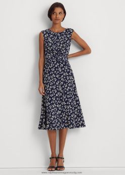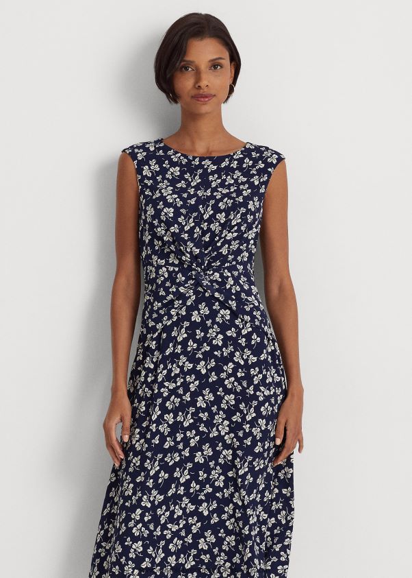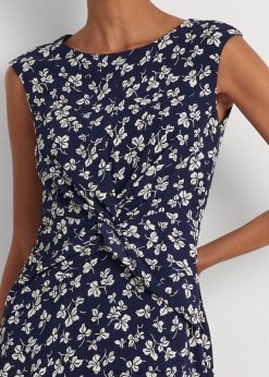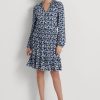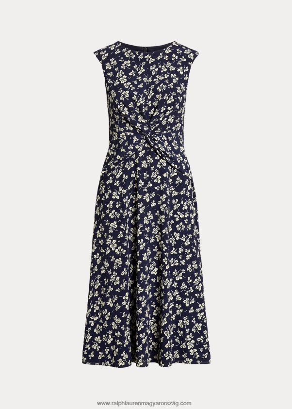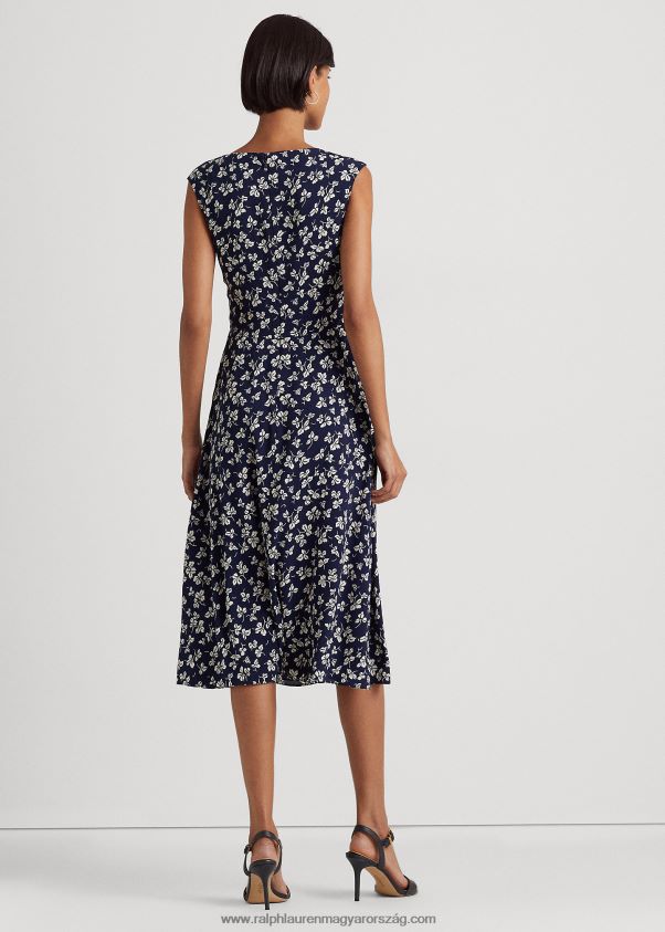 levélmintás elől csavaros krepp ruha 2680484444 nők Ralph Lauren sötétkék/krém