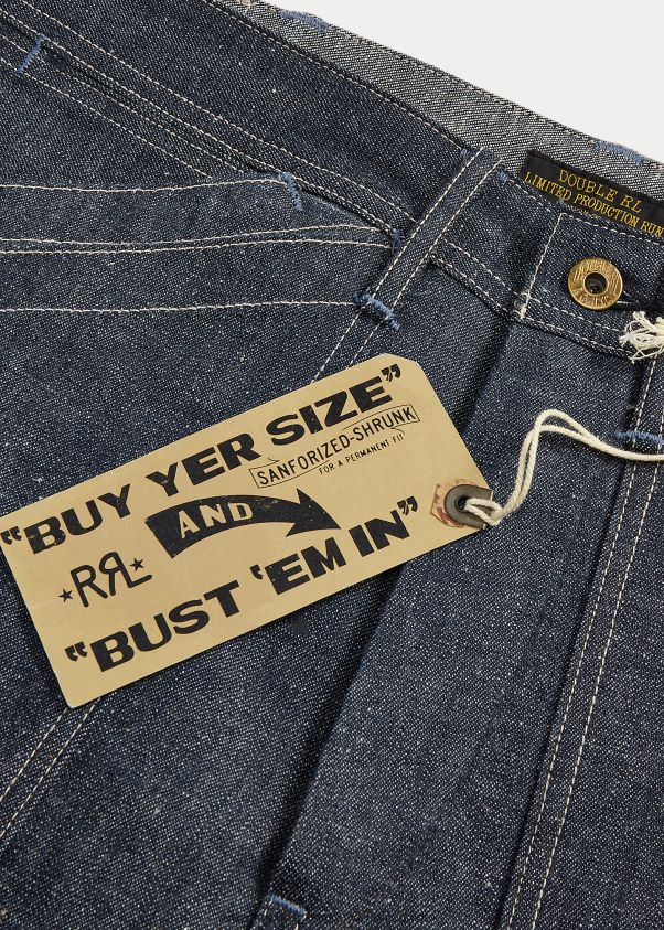 Egyenes szabású farmer 10,75 oz-ból. japán szegélyes farmer. vintage ihletésű részletek. térdben megerősítve. gombos légy. sanforizált a zsugorodás csökkentése érdekében. korlátozott gyártási sorozat.