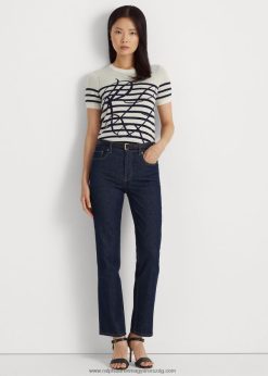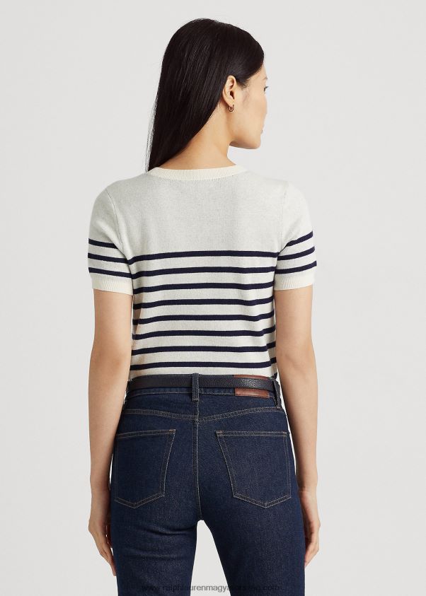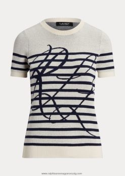 logós csíkos rövid ujjú pulóver 2680489479 nők Ralph Lauren mascarpone krém/tengerszín