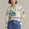 logós és hullámgrafikus polár pulóver 2680483079 nők Ralph Lauren klubházi krém