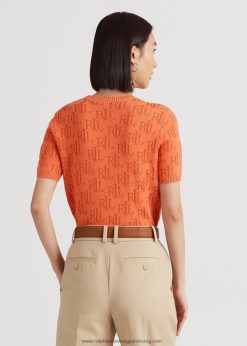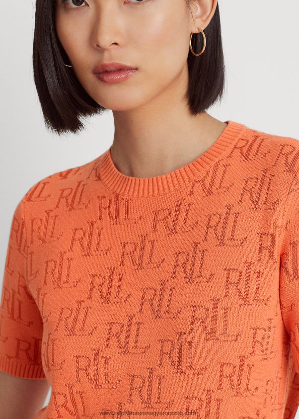 monogramos jacquard rövid ujjú pulóver 2680483787 nők Ralph Lauren kanyon narancs