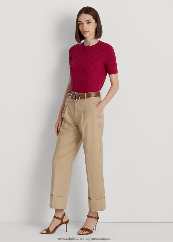 monogramos jacquard rövid ujjú pulóver 2680483788 nők Ralph Lauren fukszia bogyó