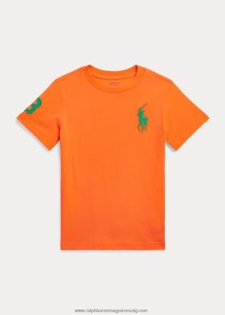 nagy póni pamut dzsörzé póló 2680486450 gyerekek Ralph Lauren optikai narancs/szár
