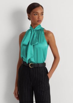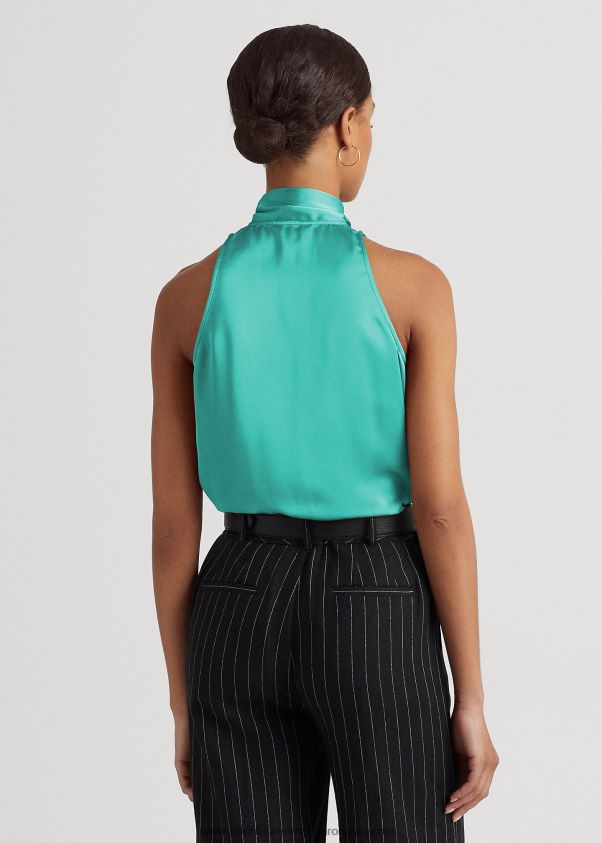 nyakkendős nyakú charmeuse ujjatlan blúz 2680489525 nők Ralph Lauren natúr türkiz