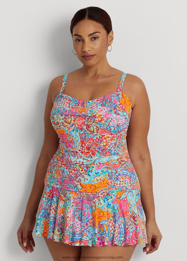 A csavart szalagos nyakkivágás és a játékos, domború szoknya határozza meg ezt a stílusos egydarabot, amelyet a szezon élénk mintája frissít fel – egy színes és stílusosan absztrakt motívum, amelyet a hullámzó óceán hullámai és a vízi élőlények ihlettek. Az állítható és levehető hevederek sokoldalúságot biztosítanak, míg a ráncolt panel és a rejtett alátét hízelgő illeszkedést biztosít.