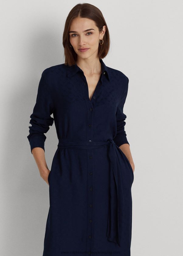 lauren A ralph lauren a szezonra felfrissíti ikonikus ingruháját jellegzetes gravírozott gombokkal és egy ”lrl” jacquard konstrukcióval. az erőfeszítés nélküli önöv a deréknál határozott sziluettet hoz létre.