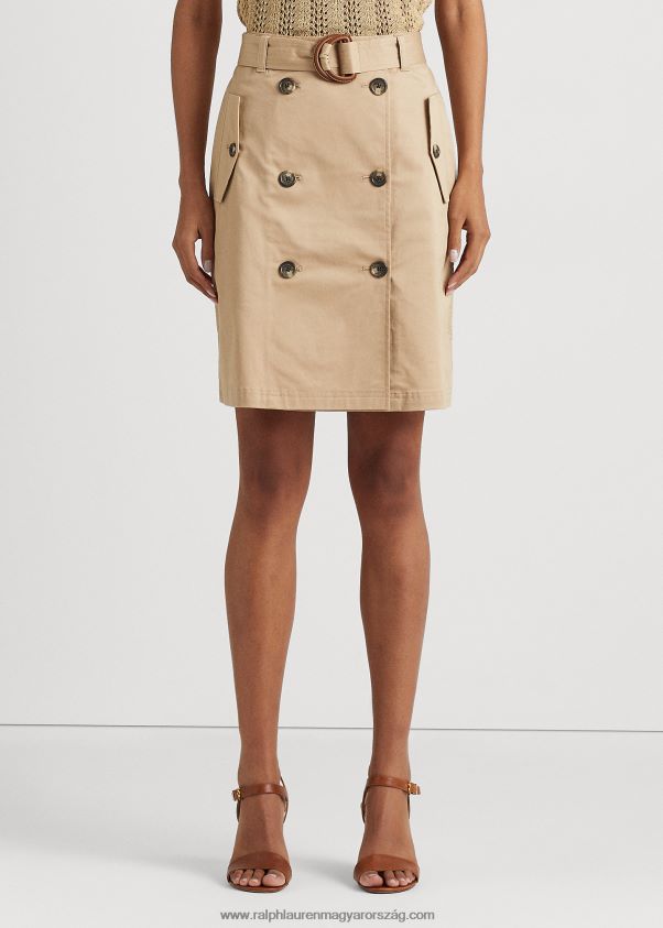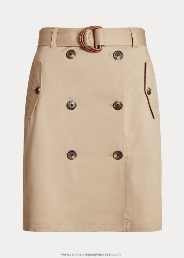A férfiruházati, kétsoros dzsekikben használt időtlen szabásmódot visszhangzó szoknya mikrocsiszolt sztreccs pamut twillből készült, így puha kéz és polírozott megjelenés érhető el. részletezett, gravírozott kürt hatású gombokkal, és műbőr d-gyűrűs önövvel van kiegészítve, amely kiemeli a derekát. A ralph lauren a jobb gyapottal együttműködve javítja a gyapottermesztést világszerte.