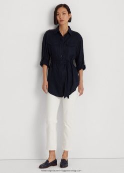 A hagyományos haszonelvű stílus ihlette ezt a könnyű vászoninget, amely gombos tépőzárral és gombos pattanásos zsebekkel rendelkezik, és a derekát meghatározó önöv alakítja.