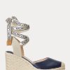 A pazar, teljes bőrből készült vámpírral készült, a szezonban a lauren ralph lauren ikonikus espadrille az ”lrl ralph lauren” hálós fűzős dizájnnal és az ”lrl” dombornyomással rendelkezik. bőr csipkefülek. meleg időjárás esetén elengedhetetlen, lábhosszabbító ék sziluettje van.