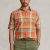 klasszikus szabású kockás sztreccs poplin ing 268048453 férfiak Ralph Lauren piros/sárga multi