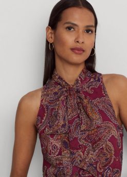 paisley ráncos georgette nyakkendős ruha 2680484278 nők Ralph Lauren bordó multi