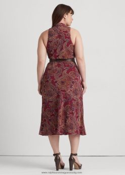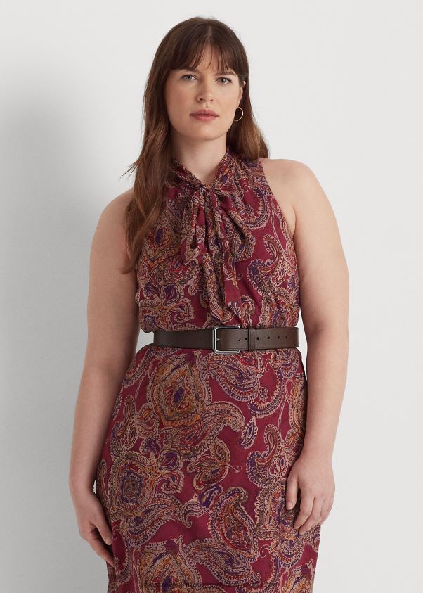 paisley ráncos georgette nyakkendős ruha 2680484497 nők Ralph Lauren bordó multi