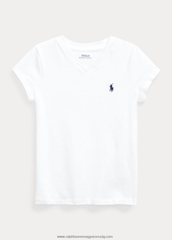 pamut dzsörzé V-nyakú póló 2680486915 gyerekek Ralph Lauren fehér