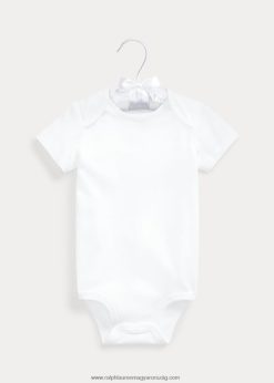 Exkluzív babakollekciónkból ez a rövid ujjú egyrészes sima pamut reteszből készült, és a bal mandzsetta részen a jellegzetes „rl” felirattal hímezték.