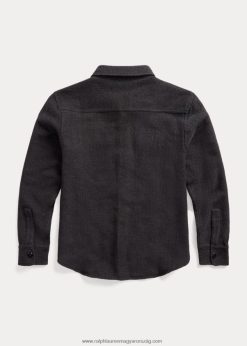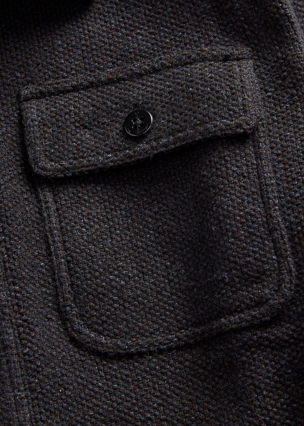 Vintage ihletésű, pamutfonalból kötött, texturált öltésben készült munkaing pulóver. twill megerősítések a belsejében. horgonygravírozott corozo gombok. mosott a nagyobb puhaság érdekében.