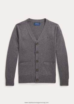 pamut V-nyakú kardigán 2680486241 gyerekek Ralph Lauren középszürke hanga