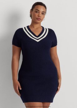 pamutkeverék krikett pulóver ruha 2680484664 nők Ralph Lauren finomított sötétkék/krém