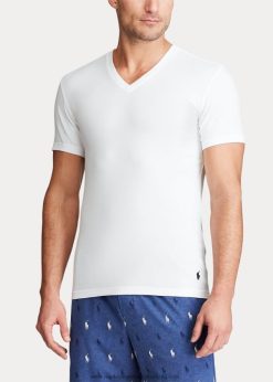 vékony sztreccs V-nyakú alsóing 3 db 268048407 férfiak Ralph Lauren fehér