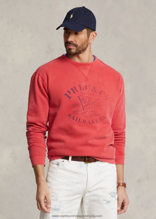 A mosott pamutkeverék gyapjúból készült, nagy és magas pulóver a szezon hajózási stílusát tükrözi, viharvert márkájú nyomattal és „Ralph lauren tengeri létesítmény” címkével a szegélyén.